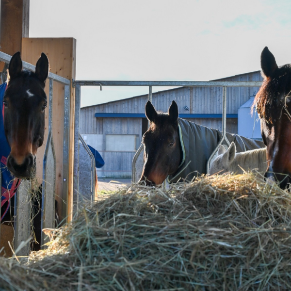 Hébergement en écurie active qui permet liberté de mouvements et contacts sociaux ;