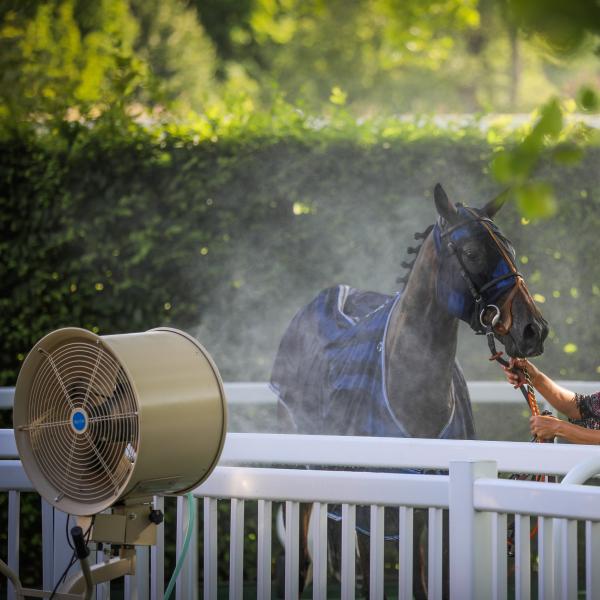 Installation de brumisateurs sur le rond de présentation et de ventaliteurs ;