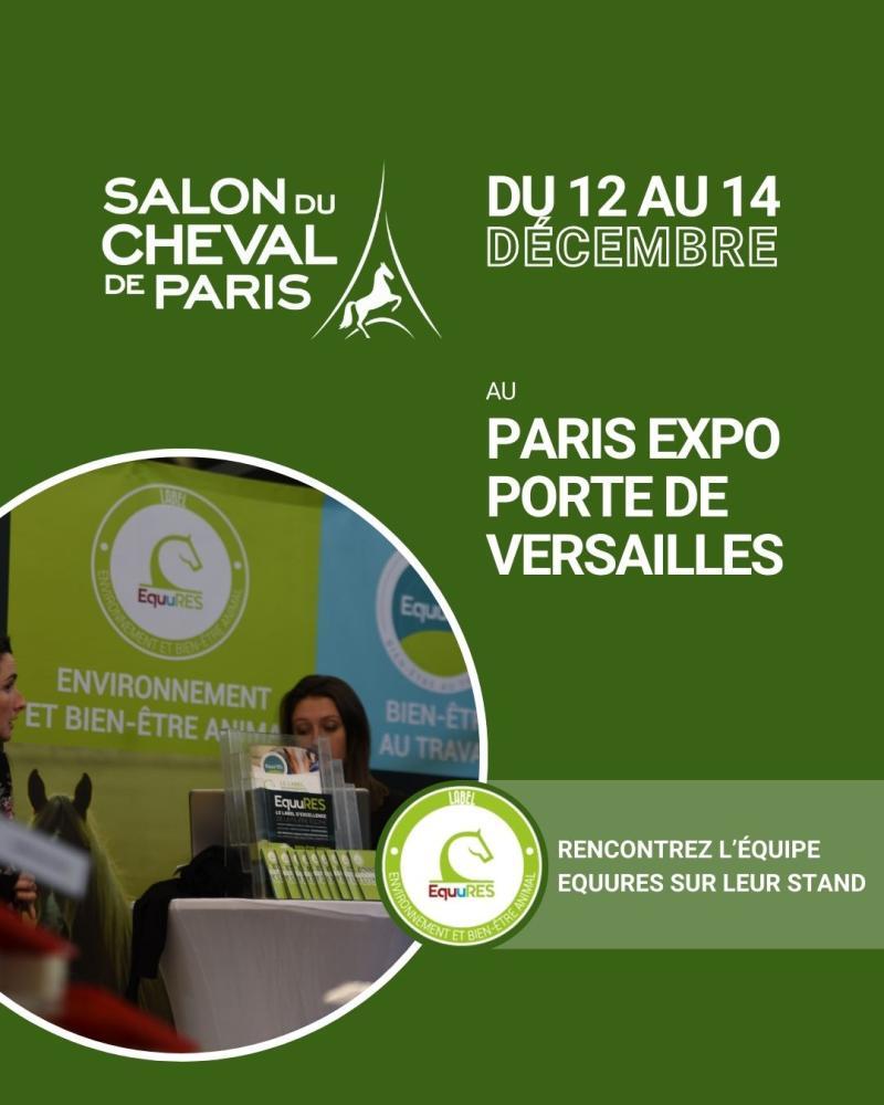 Le label EquuRES sera présent tout au long de l’événement pour échanger avec vous sur vos pratiques, vous accompagner dans la réalisation de votre autodiagnostic et répondre à toutes vos questions autour des enjeux de durabilité dans la filière équine !
